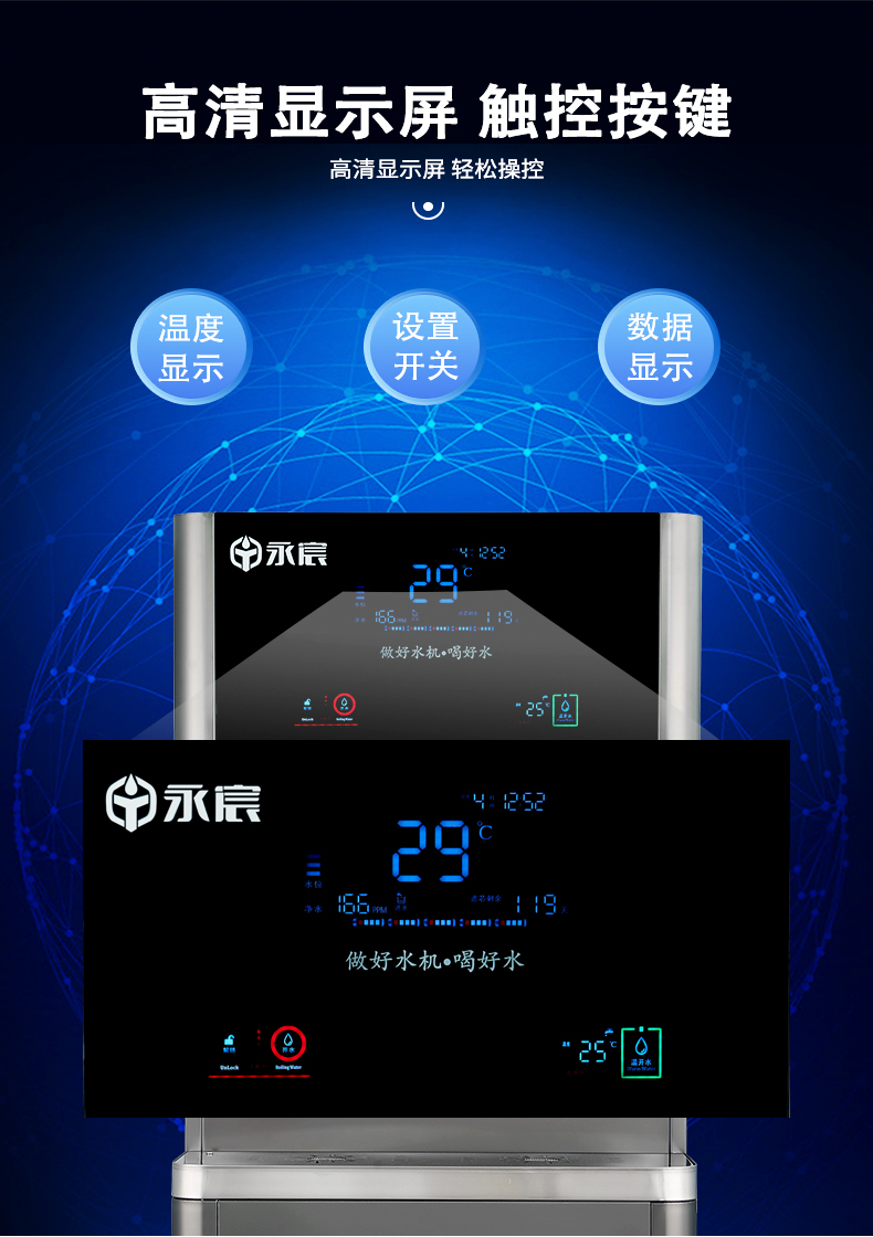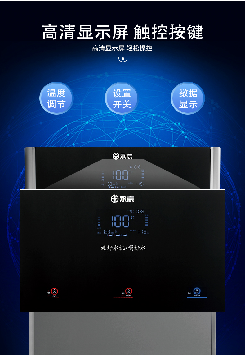 高清顯示屏:實時顯示濾芯壽命、水溫等工作狀態