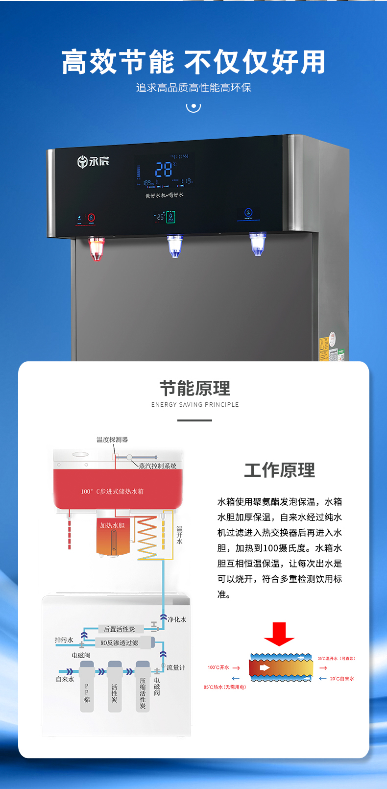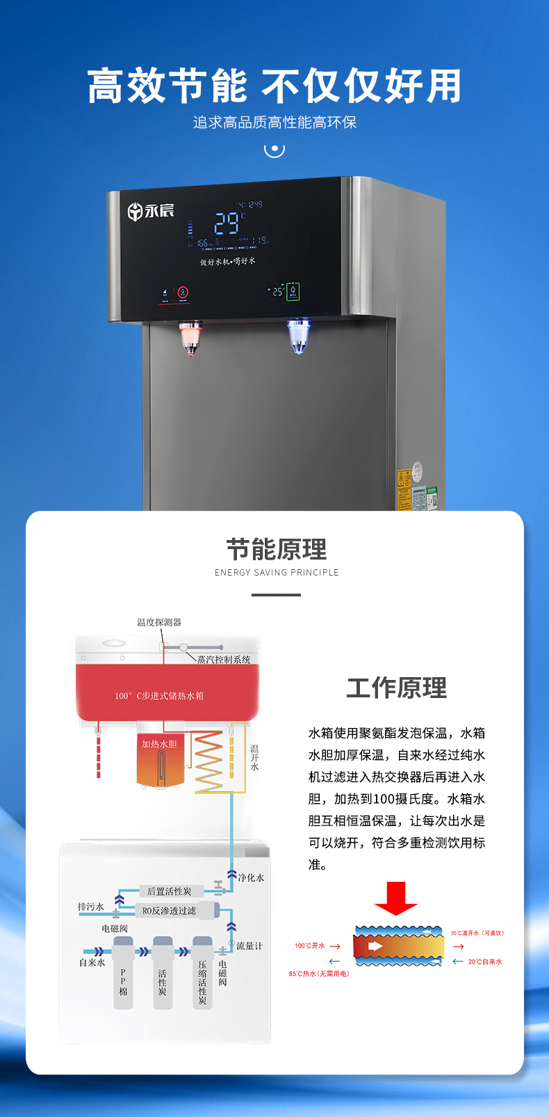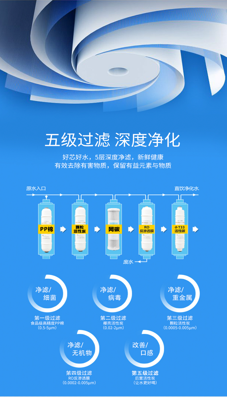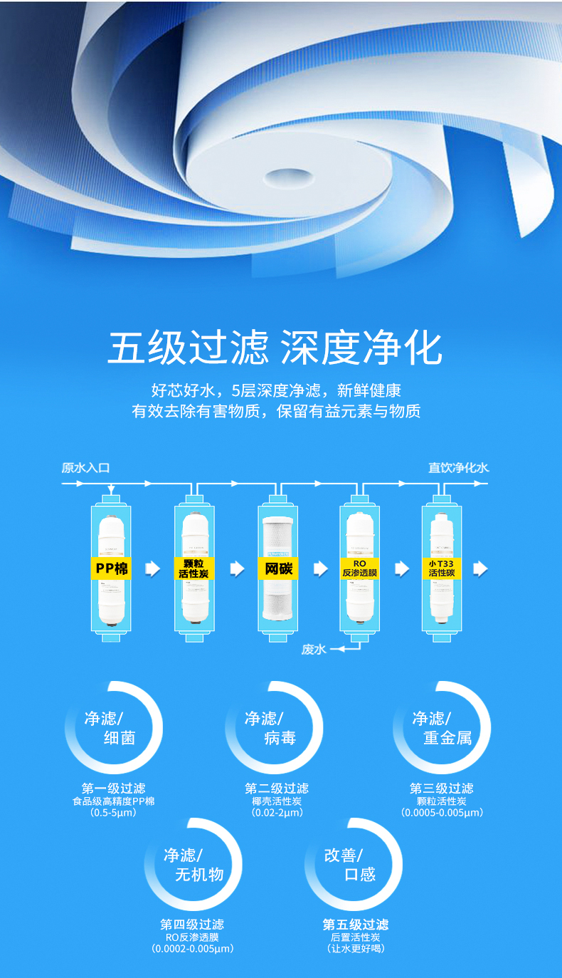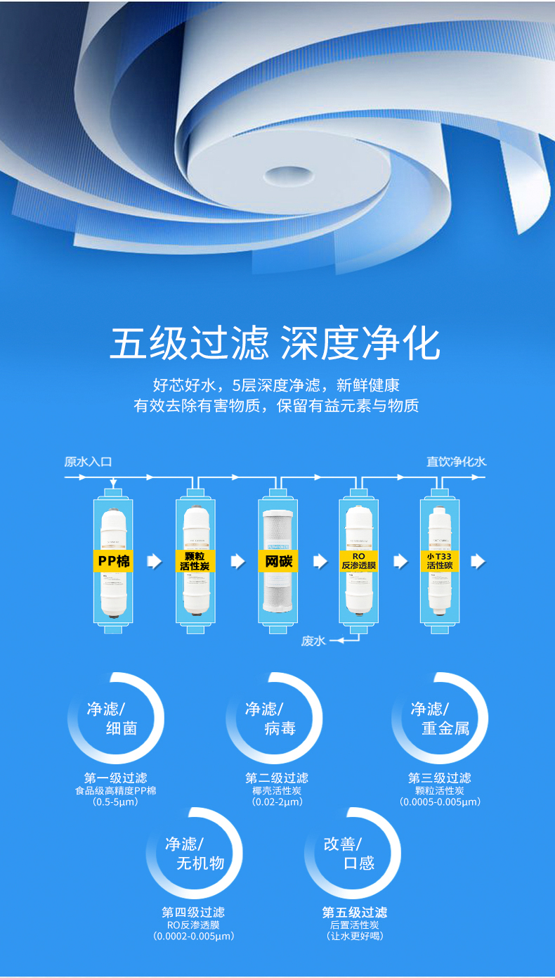 -五級RO反滲透,有效過濾水中雜質,雙核加熱,節能環保。