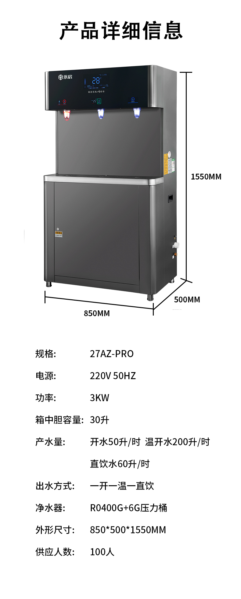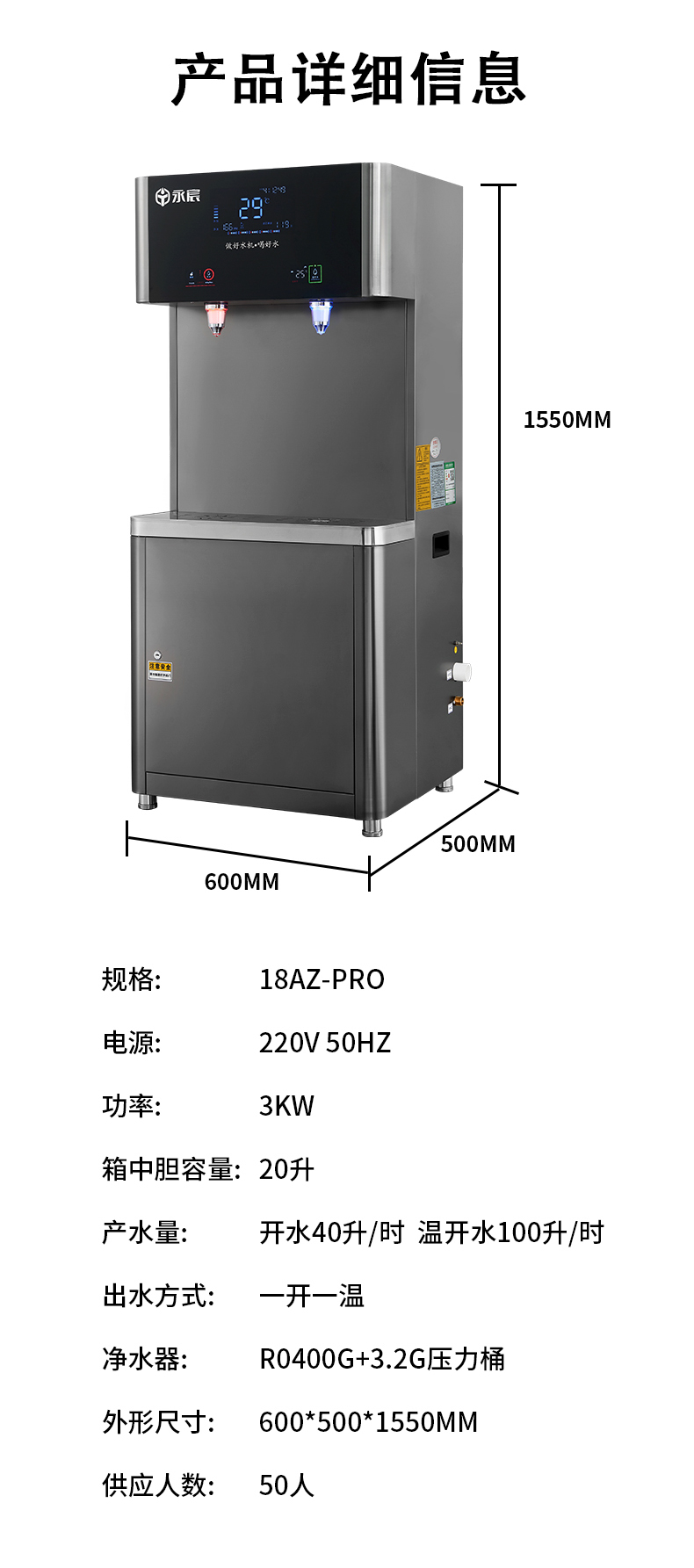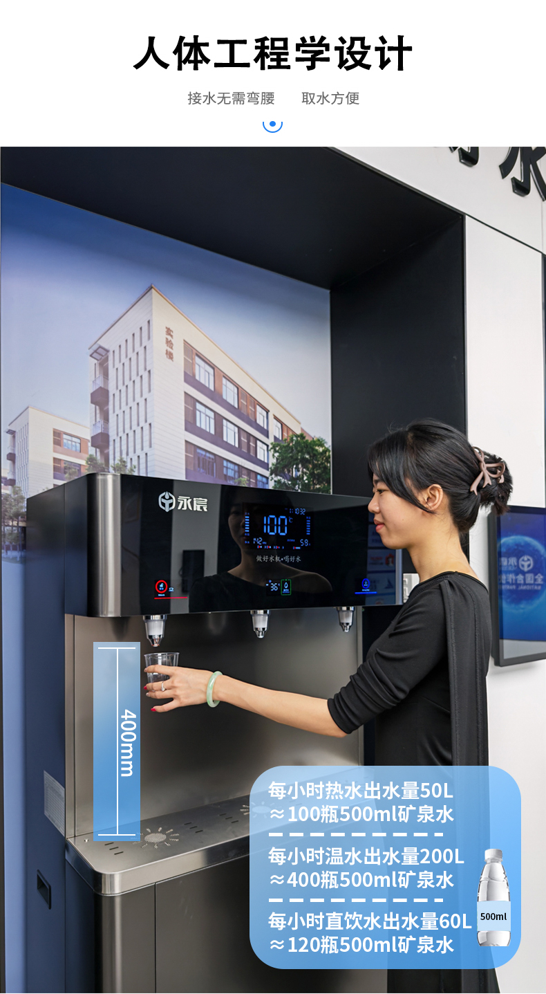 今天為大家介紹的這款永宸商用直飲機,專為100人以上公共場所設計,解決了水量、水質、便捷性和性價比四大核心需求。