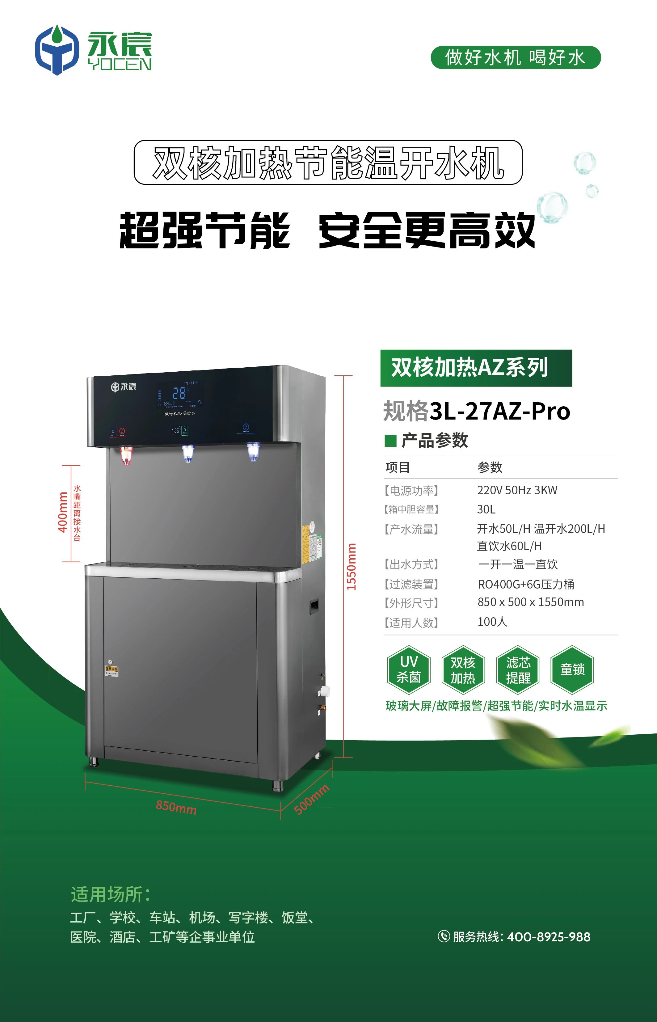 永宸雙核加熱節能飲水機【YC-3L-AZ-Pro】為多場景設計,滿足您的日常飲水需求,讓健康飲水變得簡單又便捷。
