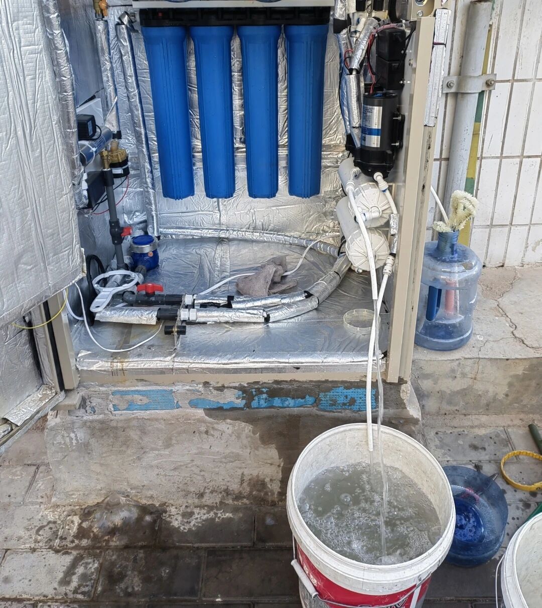 打開進水閥和電源,直到出水龍頭有水流出,再放水1分鐘就搞定啦!