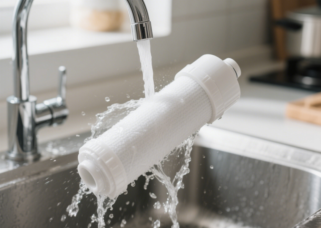 用專用扳手擰開濾芯外殼,把濾芯取出來,放在水龍頭下沖干凈,再裝回去。然后確認撥動開關處于進水狀態,