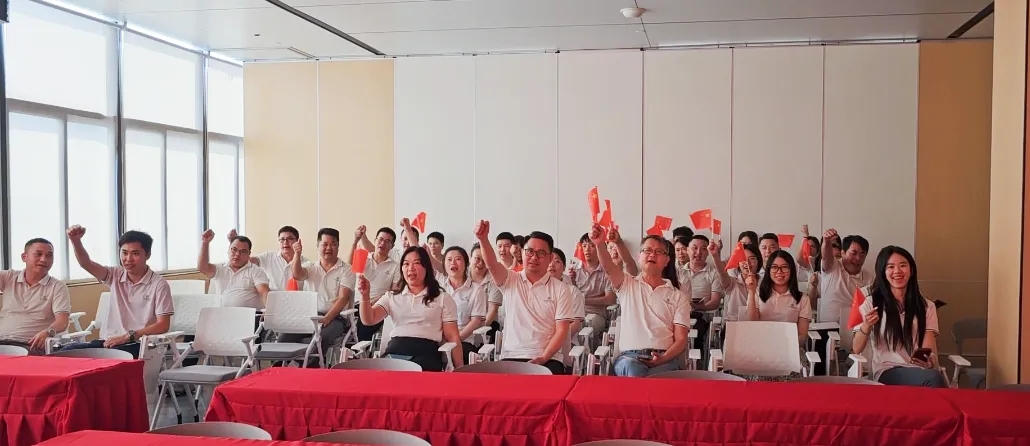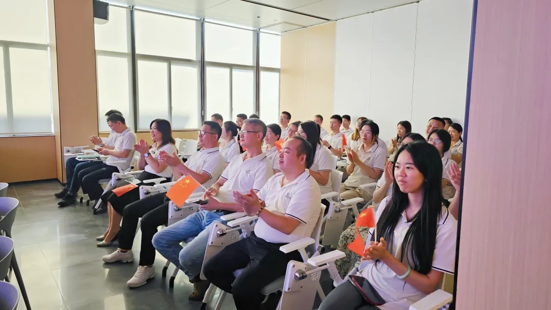 當嘹亮的國歌聲穿透屏幕,在培訓室內回蕩,每個人自發地肅立,目光凝視著冉冉升起的五星紅旗,輕聲跟唱。