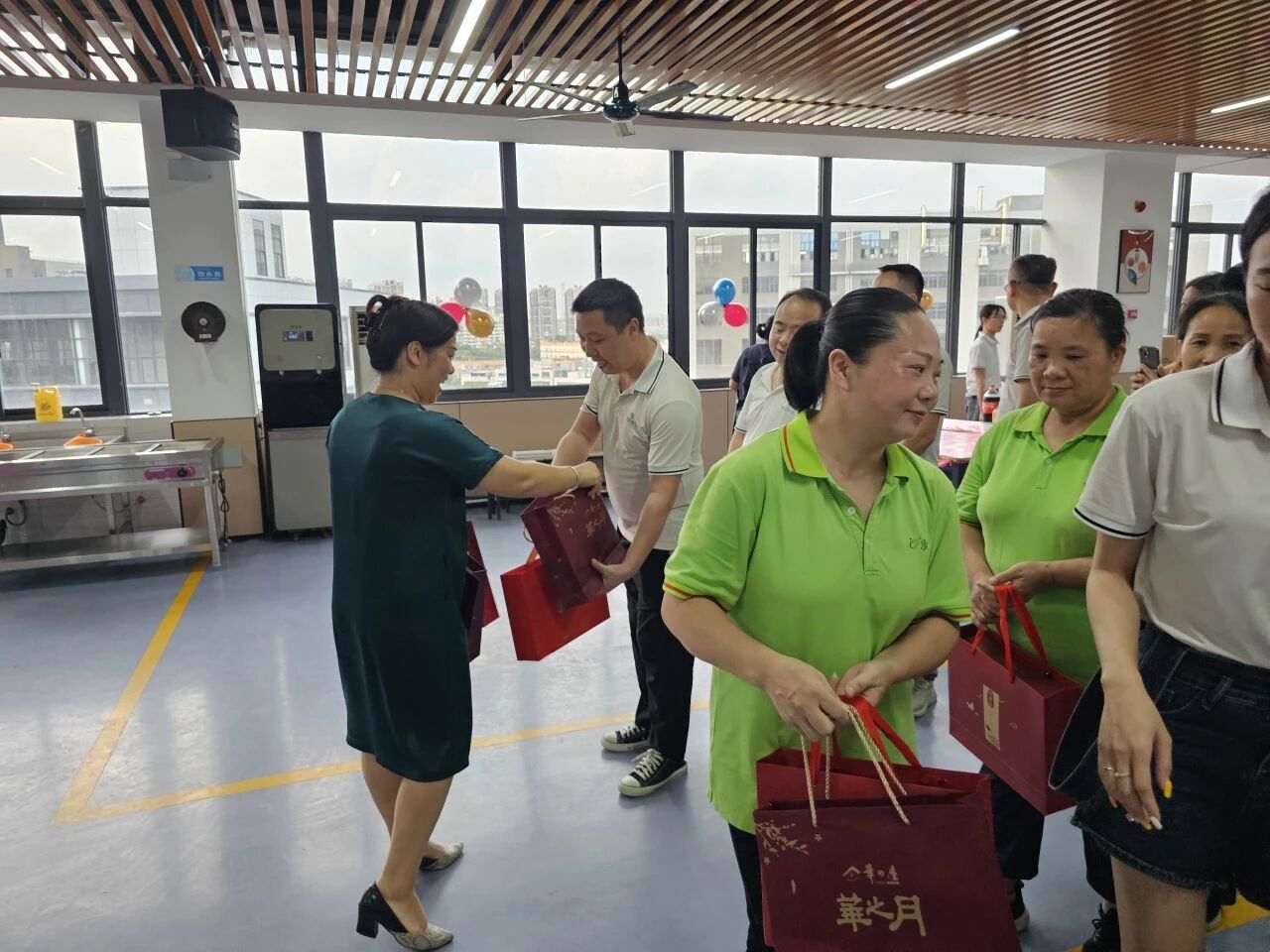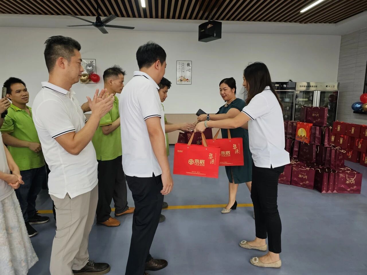 公司更為每位員工精心準備了節日禮物。紅色的包裝傳遞著節日的喜慶,員工們笑語盈盈,現場氣氛溫馨而熱烈。