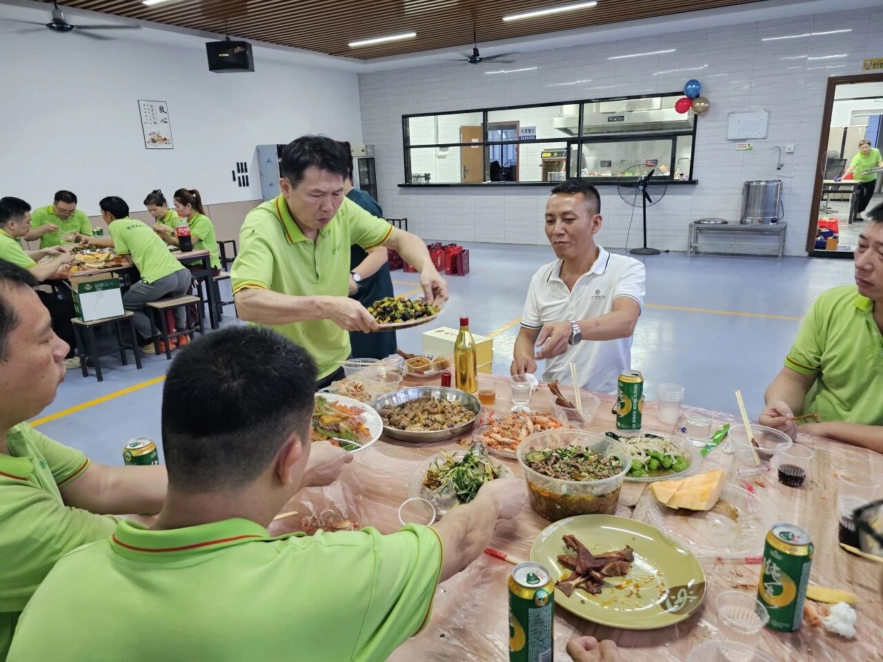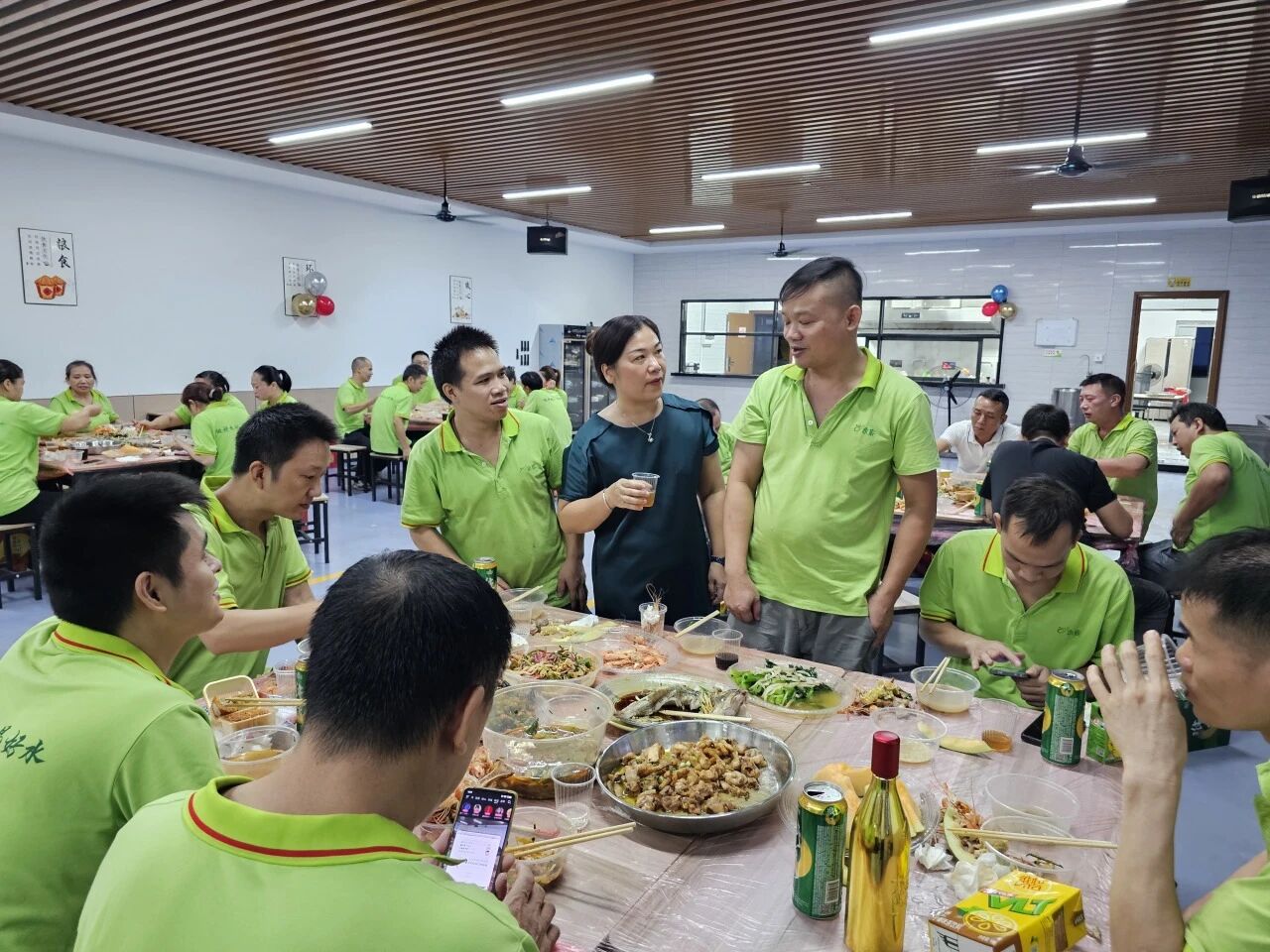 而水煮牛肉則麻辣鮮香、熱氣騰騰。大家圍坐一堂,大快朵頤,在輕松愉快的氛圍中交流暢談,食堂內充滿了歡聲笑語,其樂融融如同一家人。